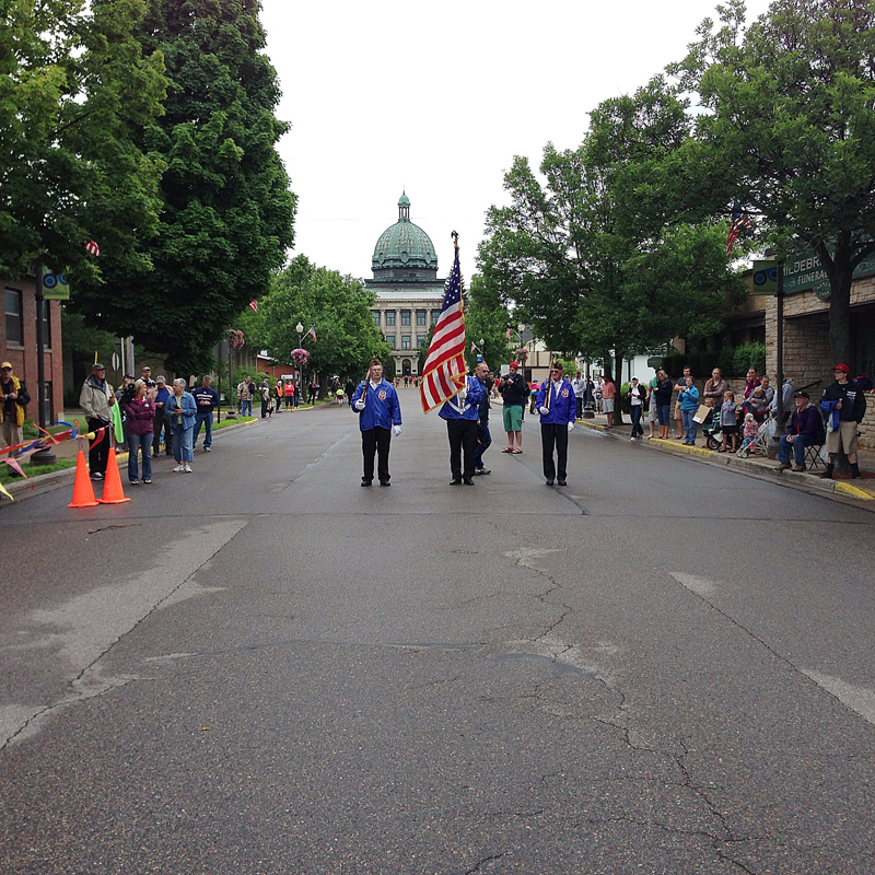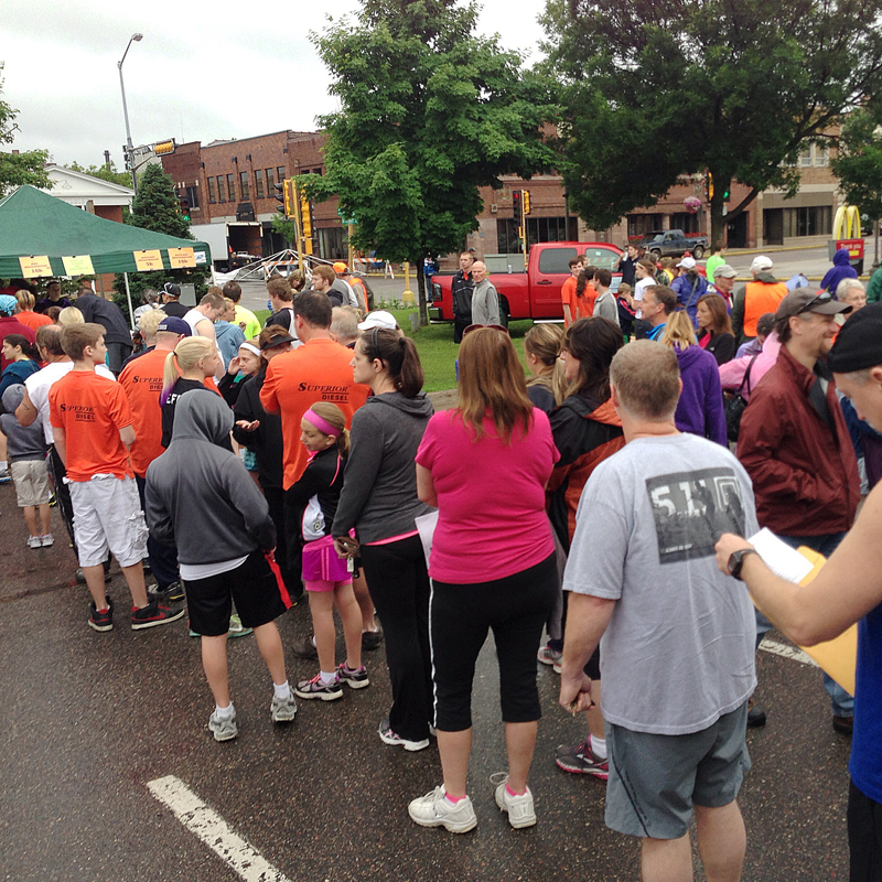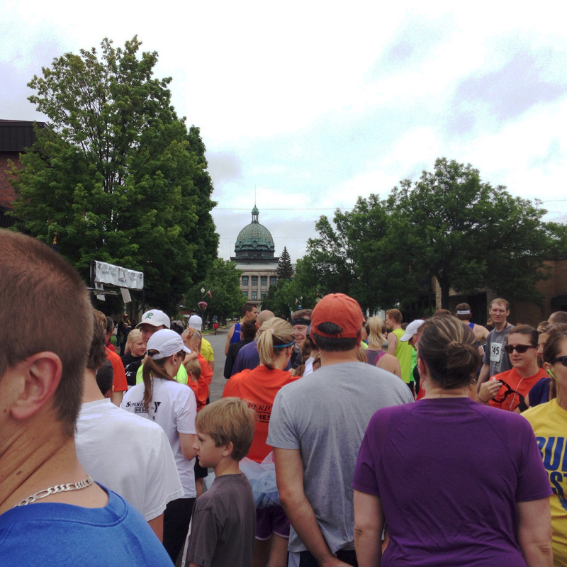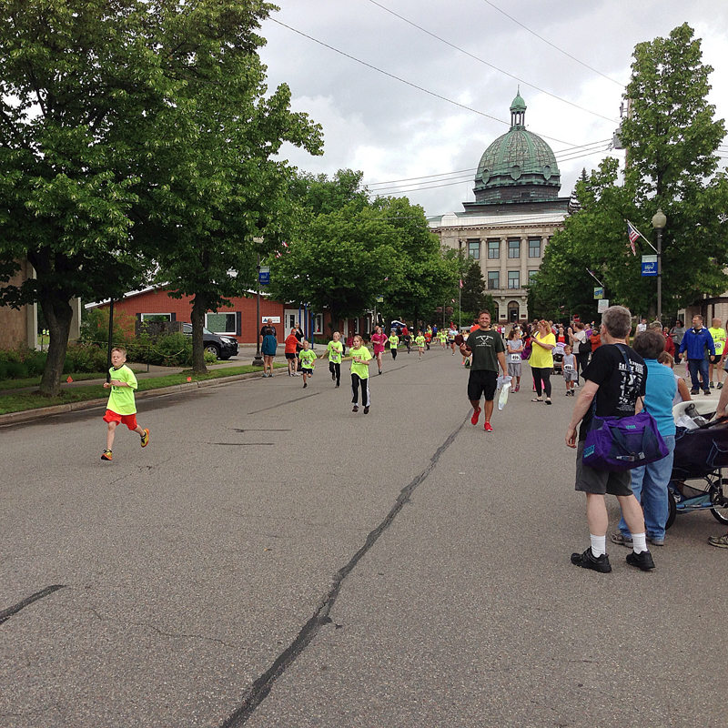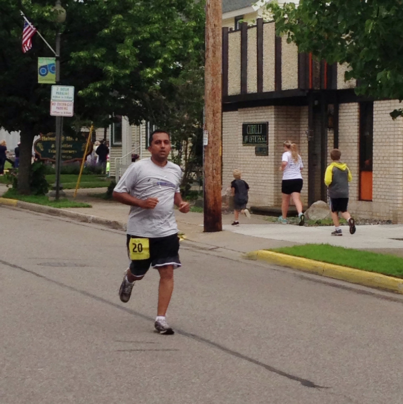 The race got off to a pleasantly surprising fast start although it didn’t take long for many of the 5k’ers (started about 3 minutes later) to catch up and start passing me. The course snaked through many of the scenic, lush green domestic neighborhoods of Rhinelander and included a few turn arounds and (anti)NASCAR-isque right turns — many of which patrolled by friendly volunteers. As a result, I always had some fellow racers in sight, although they were running in the opposite direction and about 10-12 minutes ahead of me.