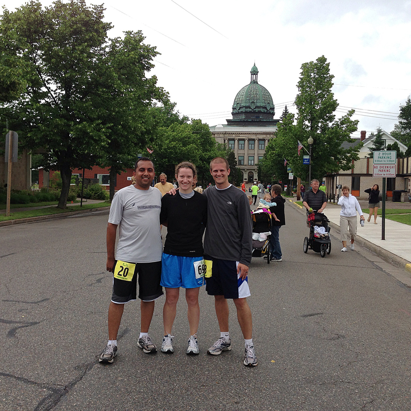A little over two weeks ago, while hanging out at a famous watering hole in Houghton, a dear friend and native of Rhinelander mentioned about the YMCA Hodag Run For Your Life – a 5k, 10k run/walk/stroller event with its proceeds going towards the Y’s Strong Kids Scholarship Campaign, which ensures that no one is turned away from the Y(MCA) due to lack of ability to pay. With fond memories of the wedding festivities from little over a year ago still fresh in the mind, and with a chance to enjoy some (real) cheese curds and Spotted Cow, it didn’t take too much thinking and persuasion to sign up for this race. Owing to the watchful care and prescriptions of another dear friend [thank the Lord for (real) doctors, eh?], the persistent and nagging cough had been on the downward trend for a while while the medication itself – Nuclear Antibiotics in particular – had become a topic of amusement to many of my other friends. With the least amount of preparation for any race so far, we (Melissa, Joel and myself) headed towards America’s Dairyland. The drive in itself was quite pleasant and brought to realization yet another thing that hasn’t changed in years: when not behind the wheels, my innate ability to doze off into short yet frequent naps (ask Nils for a reference, if need be).