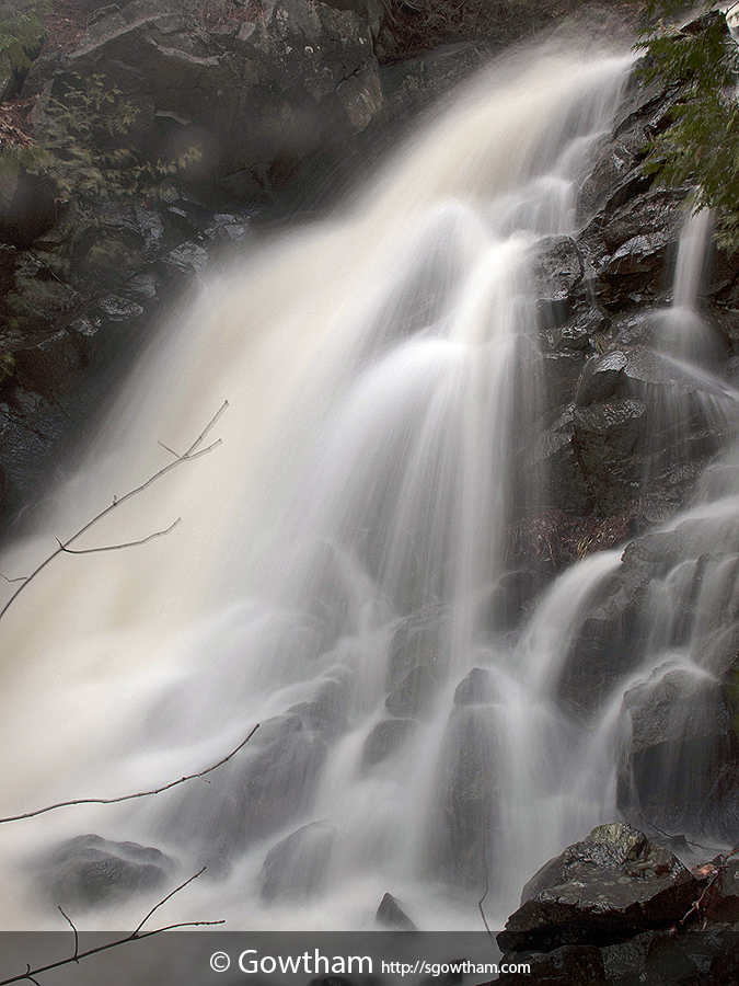 Nestled amidst the thick tree cover and rocky boulders on the eastern end of Mont Ripley, Ripley Creek tumbles down many a times forming a series of waterfalls. A long winter in the Upper Peninsula, sprinkled with April snow storm and abundant sunshine raising the mercury levels made for roaring and spectacular waterfall.