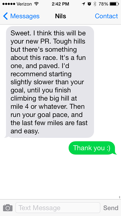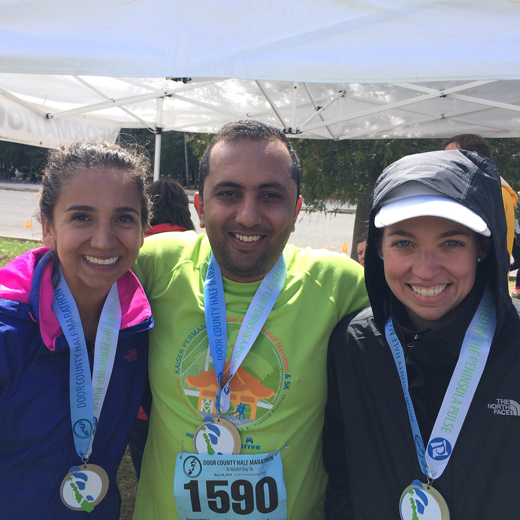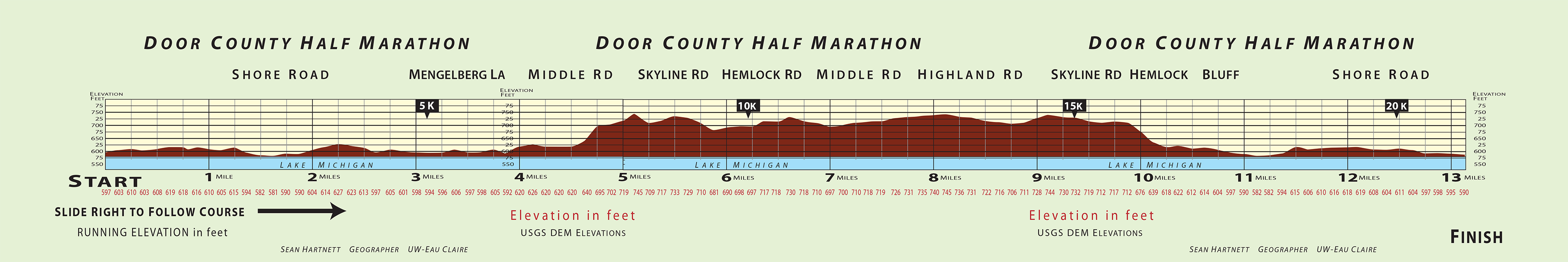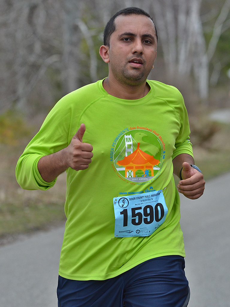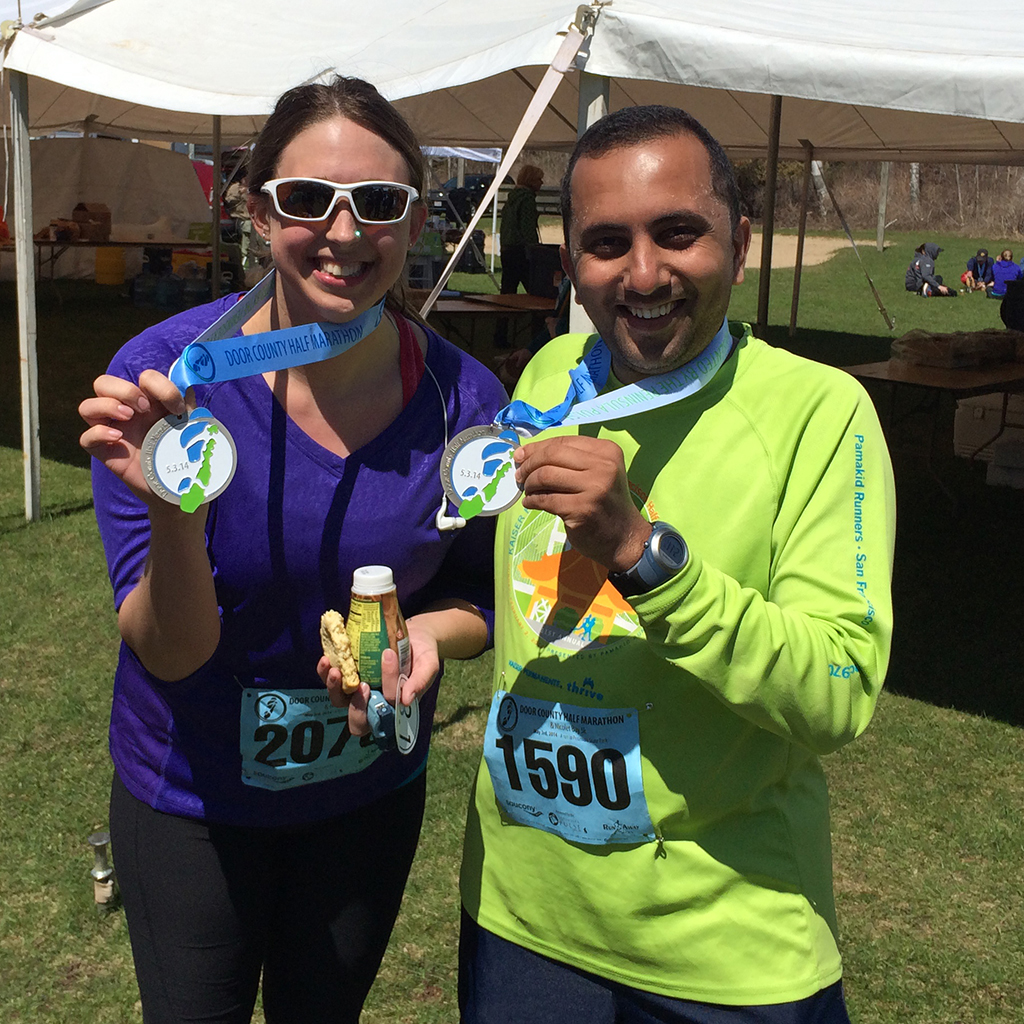 Given how much I love the varied ambience of Door County (Wisconsin), and how much fun it was to get a personal tour driving through — albeit for a short time the only time — with a dear friend‘s dad, and remembering the attractive race bling that my buddy Nils had earned in 2011 (remember, registration for this race happened in 2013 — when I was still immature enough to run for the bling and hadn’t made up mind to run better myself instead), it didn’t take too much thinking on my part to pick the Door County Half Marathon (over Cellcom Green Bay Half Marathon) from a list of events Alicia offered. Temperatures in March and April weren’t anything that I hadn’t or wouldn’t run outside in. But various interesting projects lead to almost non-existent training in much of March. Most of the runs over last 2-3 weeks included a speed/interval training concept taught by a dear friend, Rob Larson.