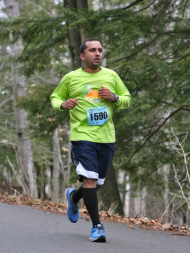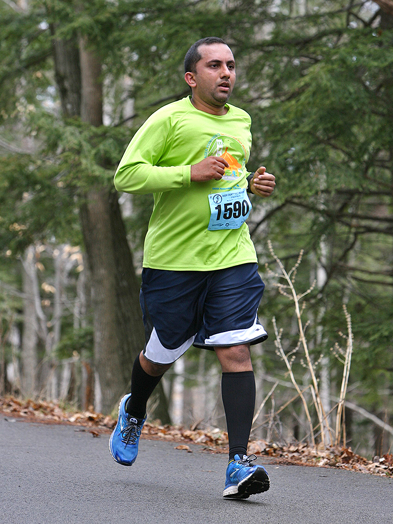 Thanks in great part to hilly courses used during minimal training, and Nils’ tips, the partly hilly course didn’t pose too much of an issue. A plethora of aid stations made sure that I didn’t have to carry the extra weight of a water bottle. A recent calorie counting insightful discussion with Christina Smigowski, Kara and Sam Graci made sure that I didn’t carry any gels (or use one from the aid stations) either. Side stitches weren’t an issue until about the 8 mile mark but they were severe when they made an appearance and stayed on for 4-4.50 miles, slowing my pace down considerably.