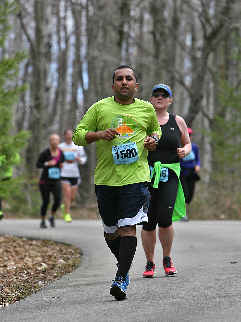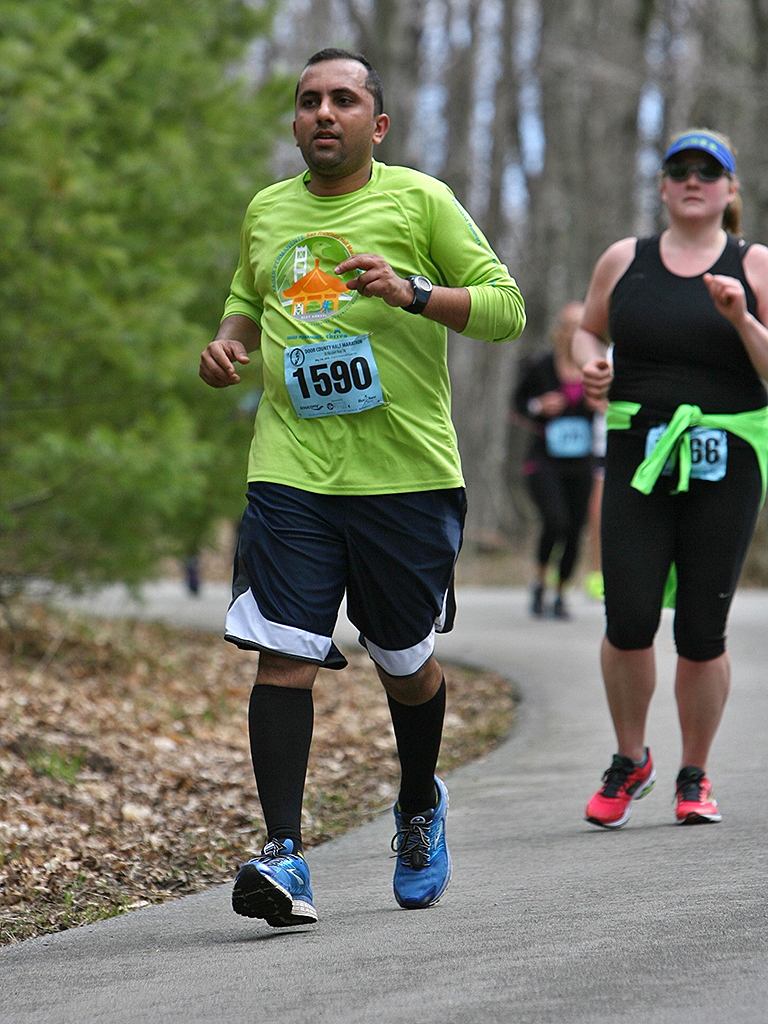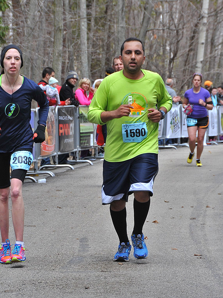 Just as I was getting into the groove of running (almost) daily, upper respiratory tract infection showed its ugly head about 10 days before the event with all the common symptoms: itchy throat, general body aches, shivers, cough and inability to often sleep well. Thanks be to a real doctor friend, Shannon Handler, for super quick diagnosis over a handful of text messages and getting me back on track via timely medication. In an attempt to minimize the impact of car legs, I opted to leave for Green Bay as early as possible on Friday. Drive down was smooth and uneventful. After taking care of some necessary task for an upcoming activity in June, dear friend Matthew Becker joined me for lunch in HuHot Mongolian Grill — one of my happier places in that area.