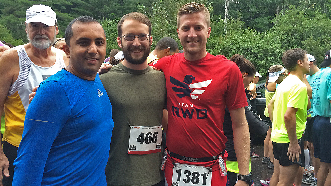 I woke up to pouring rain after a full night of sleep and rest, and made my way to the designated parking area, and later to the starting area in Neguanee via transportation service provided by the race organizers. Michigan Iron Industry Museum provided the much needed shelter — protecting runners from rain and keeping our bodies warm. The event started on time, in rain, after the rendition of the national anthem. The rain soon turned into a gentle mistI stayed with Ben and Jeff for the first four miles maintaining a sub 10:00 min/mile pace. While the pace remained under the desired limit, natural separation kept me somewhat behind Ben and Jeff for many more miles (I didn’t see Ben again until the finish was in sight). The course was a mix of crushed gravel and asphalted surface, and ran along the scenic Iron Ore Heritage Trail for the most part.