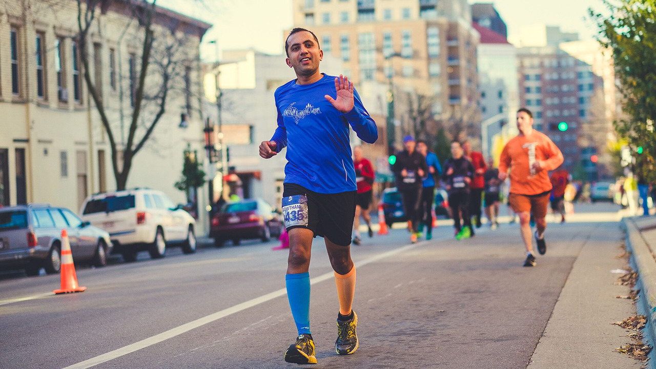 The race started on time. Having found the right pace group to start ahead of time, it was relatively easier to navigate through the crowd and have plenty of wiggle room around me to minimize the chances of being in the way of a better runner. The course took me through some really calm and serene areas with frost-bitten sidewalks and grass and shrubs, steam raising from the waterbodies, and an occasional group of spectators that grew with every passing mile. Things seemed to be going fine for the first half of the race: given the ideal conditions for running and prevailing cooler temperatures, I thought I wouldn’t be needing as much hydration as usual and decided to use only every other aid station.