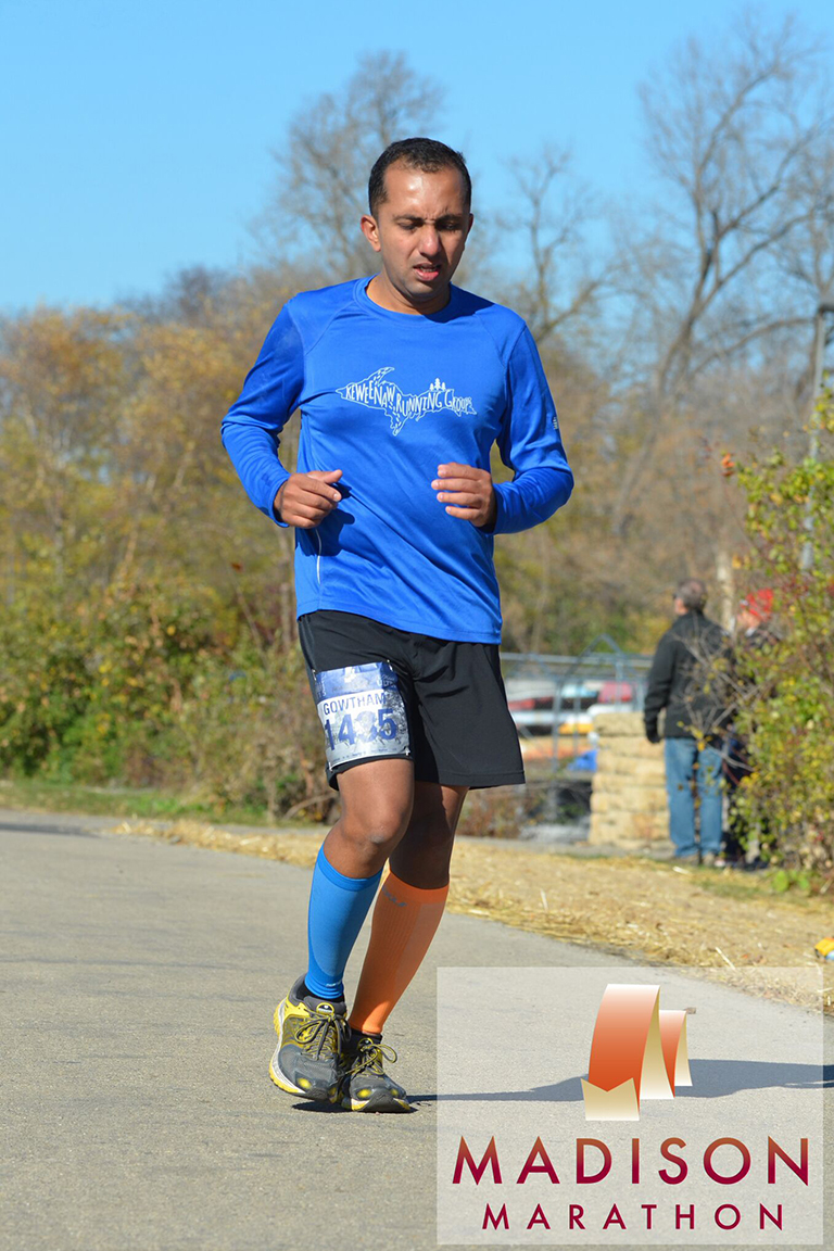 Post-race activities included consuming some water and a sandwich, and an hour long attempt to restore coherence so that I could walk straight and drive back to the hotel. Rest of the afternoon/evening included more eating, a short nap, raking some leaves in a friend’s yard and getting some food (and a much awaited beverage) around the Capitol while discussing teaching/management strategies. A rather full night of sleep, and an uneventful drive back to the Yoop spent mostly contemplating on the good fortune of seeing John Muir’s farm house a few days ago as well as the value of a glorious opportunity that I didn’t make good use of a day ago.