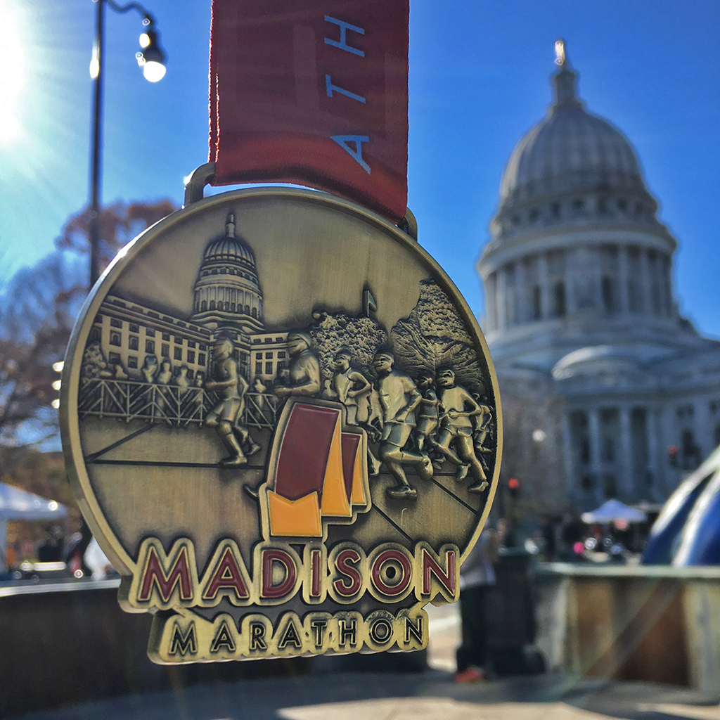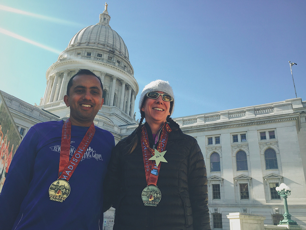 Rest of the drive, from John Muir Memorial County Park to Madison, continued to be uneventful and so was checking into the hotel. Time between arrival and start of the race was spent mostly working on work things while attempting to do nothing stupid that could nullify the training invested so far: dinner on Friday night with dear friends Karen and Adam, a short and easy paced run on Saturday morning followed by lunch with Karen and Adam, renewing my semi-annual Wisconsin citizenship with help from Adam after lunch followed by dinner with dear friends Jamie and Sarah.