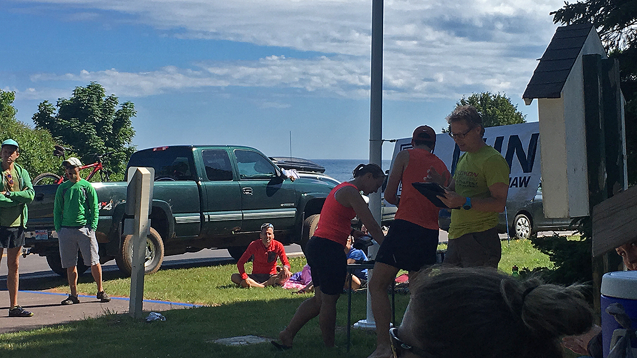 Pre-14k activities included re-fueling, hanging out with friends around the cabin, a trip to the Keweenaw Adventure Company and the General Store to pick up a few supplies, a chat with the Weathers family, an easy bike ride to the end of US41 with a pit stop on the way back in Fort Wilkins Historic State Park Campground to chat with Ray, Kim and Greg Green, and Shawn Oppliger, and watching the kids’ 2k race.