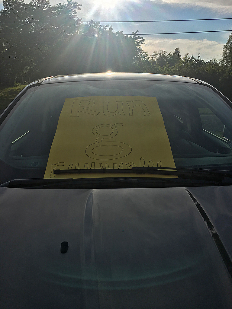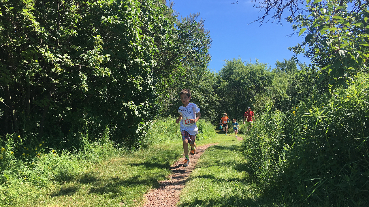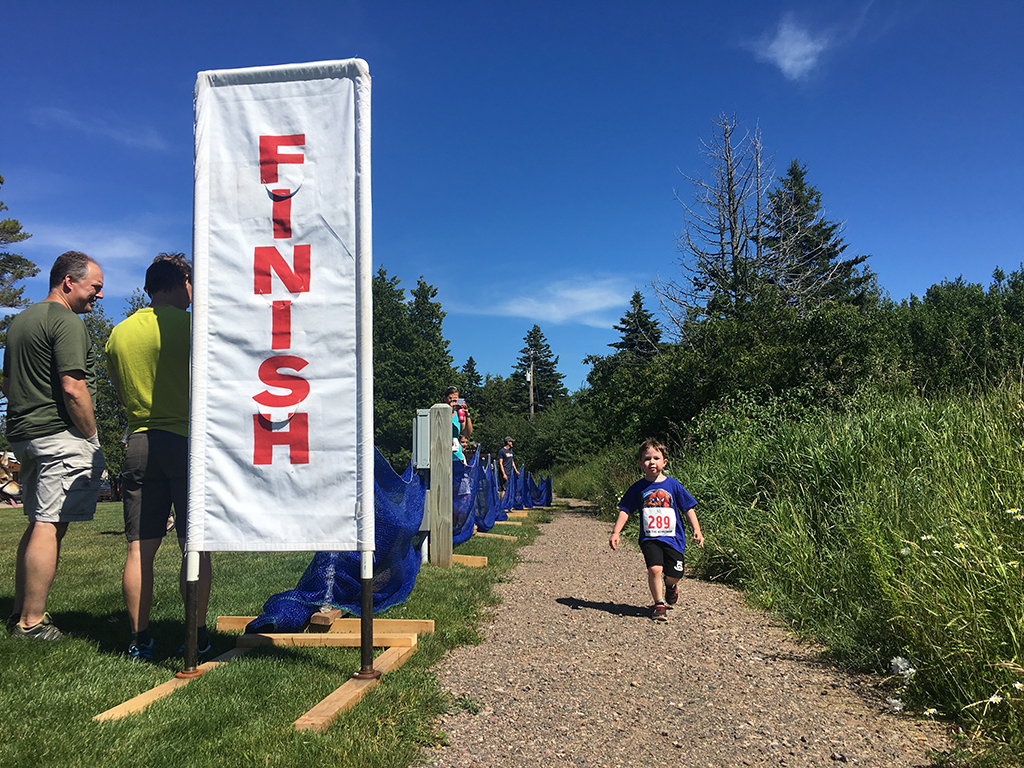 A completely new course and distance, tailor-made for the speedsters amongst us, had attracted a larger than usual (?) number of participants. Starting where it usually started (and on time), the course snaked through previously unknown (to me) trails before merging with one that runs the length of US41 to its end. It was an utter yet lovely surprise to see Whitney and Adam along the course holding up a sign to cheer me on (I had absolutely no idea that they were even in Copper Harbor) — first of its kind ever in my so far short athletic career!