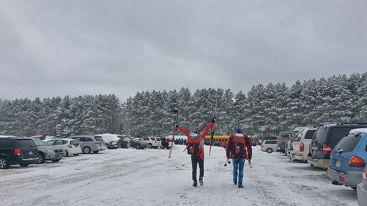 The race day morning came at a reasonable pace. When I woke up the third time to use the bathroom, I kinda had a hunch that it was going to be a good race. After all, I had listened to Bill McKibben’s Long Distance a few hours ago and his rule of thumb had been you didn’t hydrate well if you didn’t wake up three times to pee the night before a race. Plus, 29 is a beautiful prime number – the official distance in kilometers I’d ski to complete my first Kortelopet. Furthermore, the area received the expected/predicted amount of snow overnight and gave me additional hope of skiing on a non-icy trail. My butt has a tendency of falling down a lot and it certainly would prefer a softer landing! After some discussion, reviewing the race guide and Mathematics, we figured it’d be wise to leave the cabin around no later than 9:15 am. Jim made me a fantastic breakfast – two eggs and a bagel. The whole group set out to drop DJ and me off at the Birkie Ridge parking lot.