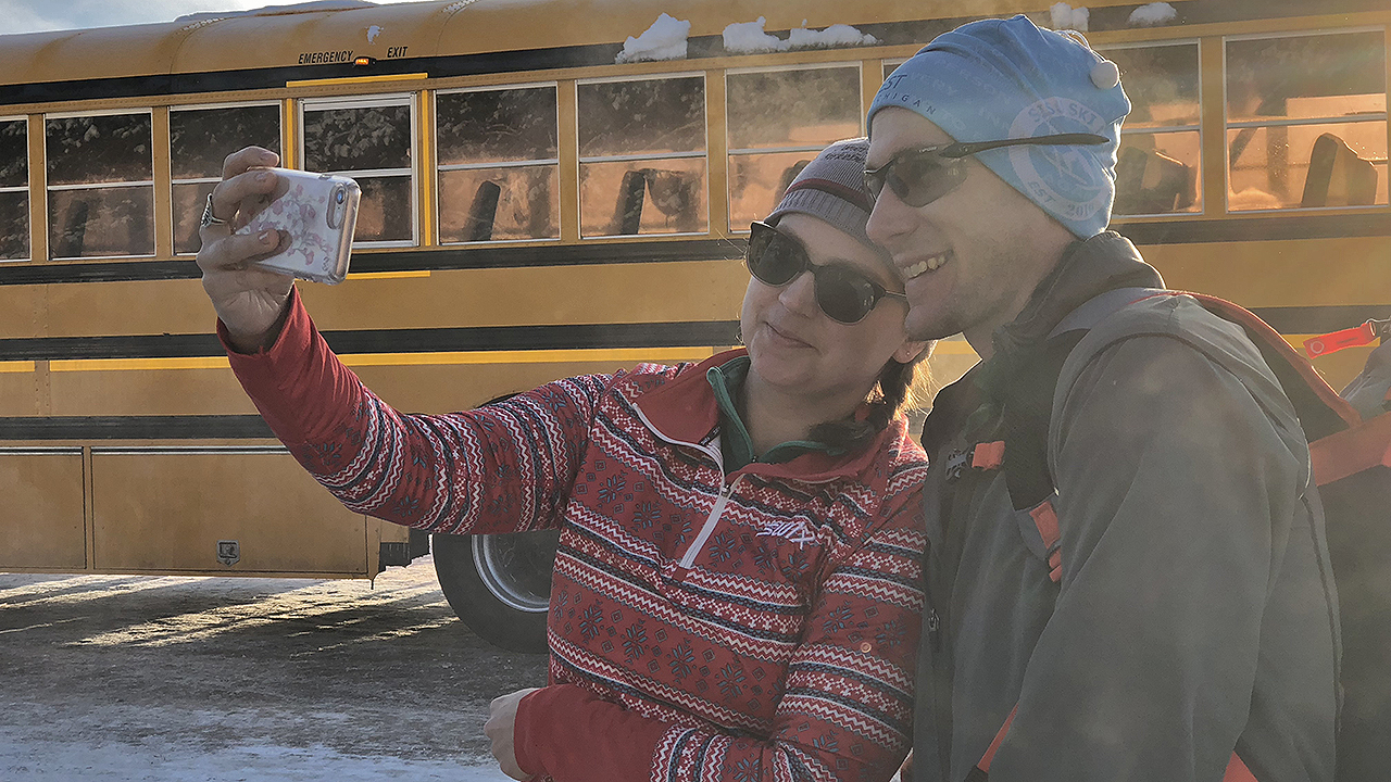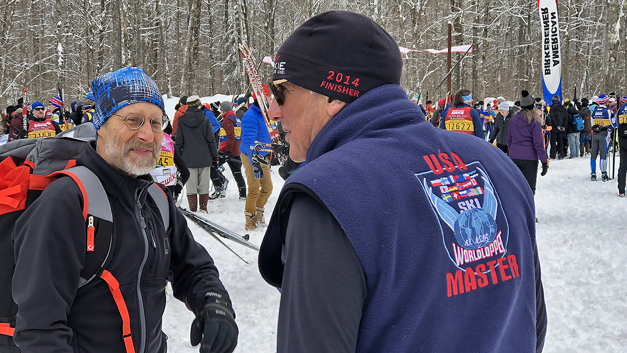 Another full night of sleep (no, I didn’t wake up once to use the bathroom) and the day after came with no fresh snow but quite chilly temperatures and bright blue skies. A comparatively quick drive saw Christine and I drop off Jim and Stephen at the Birkie Ridge parking lot for their journey towards the start line.