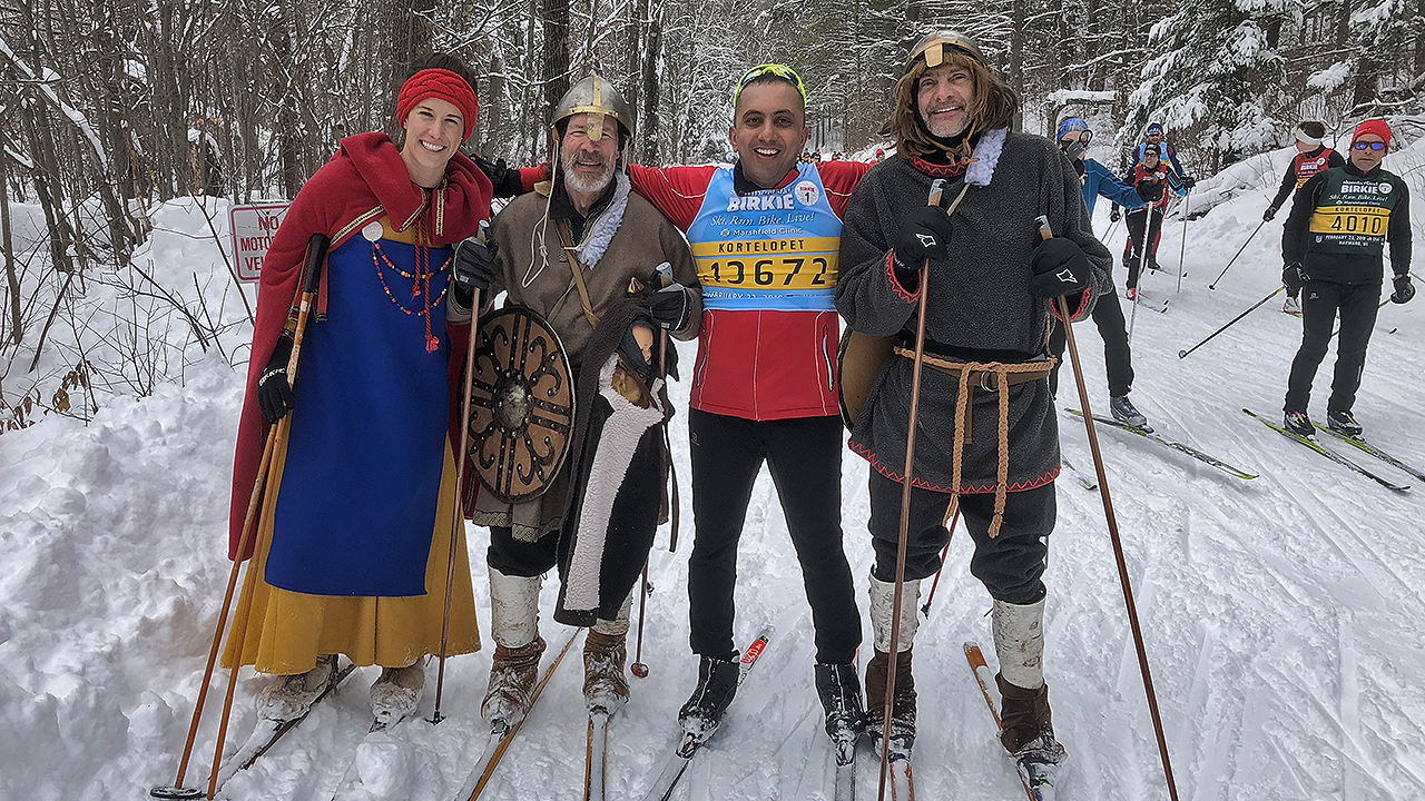 The beauty of this transformation … in a sporting event deep in the woods of Northern Wisconsin; fresh snow dancing down from tall pines in tiny little sparkles; skiing alongside numerous like-minded humans aided by kind and graceful volunteers and staff; learning to place a higher priority on the effort, the journey and the stories (e.g., photo opportunity with the Birkebeiners, chatting with Father Birkie) than just the finish time; learning to be content and happy with the result, … is pretty hard to describe or sum up with my limited command over the English language. Hopefully I can keep up the newly found semi-triumph of sensibility and discipline over raw desire and this 29 km of Kortelopet will serve as a rite of passage to a sub-3 hour Korte finish in 2019 and subsequently to finishing a full Birkie in 2020. It may even lead to a transformation from just a week (or weekend) of Birkie Fever to a year-round Birkie lifestyle. I can hardly wait to see how much more transformation a 55 km wormhole will bring in two years from now!