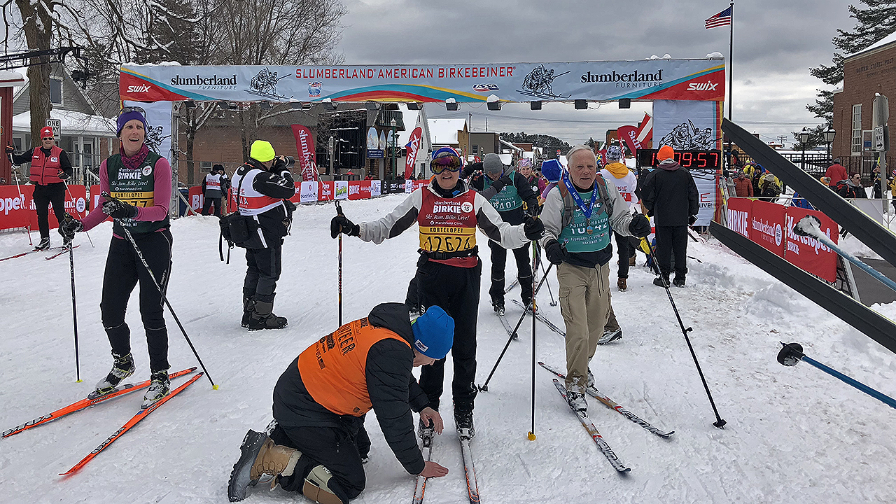 The Birkie Gods were kind again and didn’t let me fall in front of an energetic, vociferous and energizing crowd on Main Street. As I came down the International Bridge, I heard cheers and thought I must have been very smooth but turned out they were cheering for another skier who was standing up after having fallen down (and deservingly so). With finish line less than 300 meters away and with friends and family cheering on from both sides of the Main Street while ringing cowbells, it was relatively easier to dig a little deeper, channel my inner Jessie Diggins and finish on a strong-ish note. When I finished, my GPS showed I had taken about 3 minutes over my primary goal for time. And for one of the fewest times, it didn’t seem to matter.