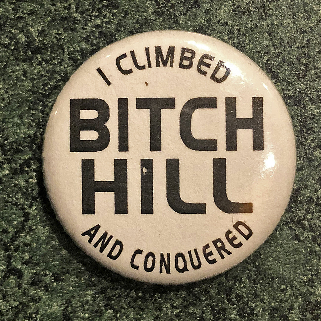 The Priest, Father Birkie, had the skiers chant Hallelujah, Amen and few other holy words as we climbed the hill. Once near the very top, I gave the Father Birkie a big hug and chatted with him for a few minutes passing on Christine’s message. He was kind, a good conversationalist and as I was about to continue my journey, gave me this lovely little pin … the last one he had saved. Even if some supposedly very religious skiers believe their God wouldn’t approve of this “Priest”‘s alleged antics (e.g., cheering people on, getting them to say a few holy words, and put up a sign called Holy Hill), I doubt the God would have taken any issue with his actions – especially if He/She was skiing up this Bitch Hill!