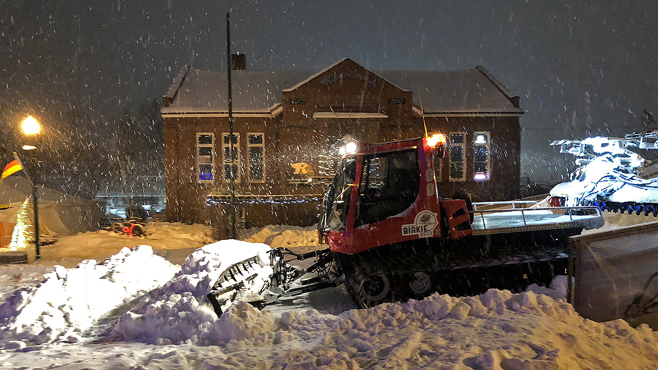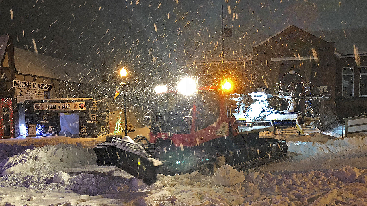 Much to my disappointment, I wasn’t a very good sport during dinner or while we were out on the town – the additional supplement of ibuprofen I had taken a day ago had worn off. The soreness was starting to not only set in but set in hard enough that it was rather painful and made me very sleepy (and appear sickly). Amidst all this and the what seemed like a heavy snowfall, it was quite impressive to see the event staff work to restore Main Street to its normal state of affairs. I dozed off on our way back to cabin and slept through the night pretty well. I am sure just about everyone in our cabin did too.
