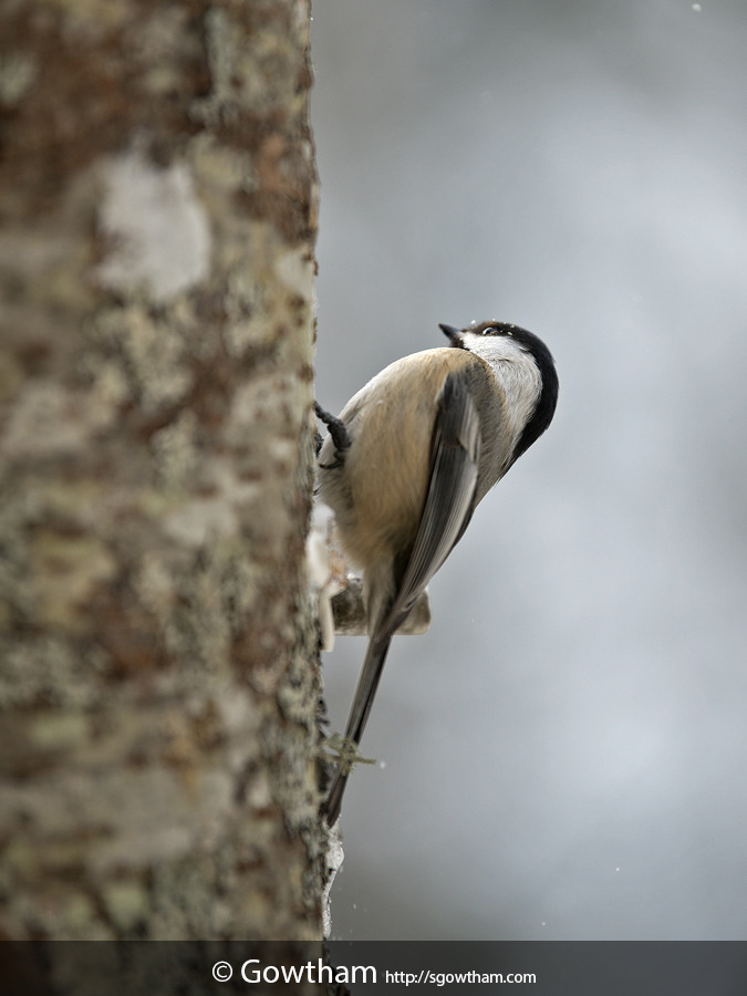 State bird of Maine and Massachusetts, Black-Capped Chickadee (Poecile atricapillus) is a small, non-migratory, North American songbird that lives in deciduous and mixed forests. It is well known for its capacity to lower its body temperature during cold winter nights as well as its good spatial memory to relocate the caches where it stores food, and its boldness near humans.