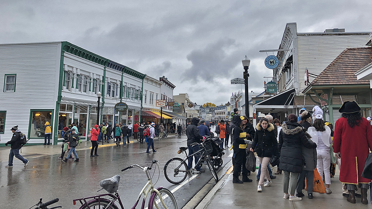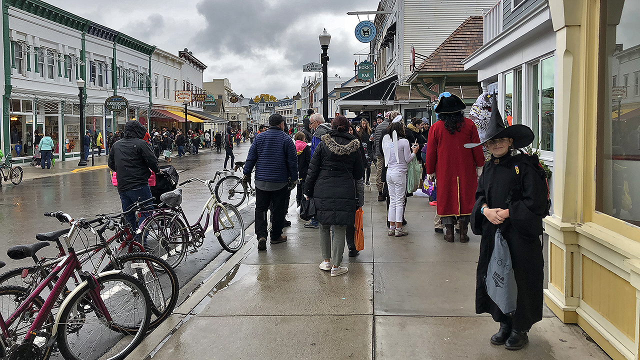 I believe the race day was the last day the island is open for business and they have a lovely tradition of ending it with a Treat Street (or Trick or Treat for kids .. of all ages) on Main Street. Every business establishment participated and it was pretty neat to see many interesting costumes. Most kids would have likely enjoyed it a lot more had it not been for the continued winds and rain. We (Alaina, Stephen and myself) got some food at the Murray Hotel and I acquired some of the famed Mackinac Island Fudge (we were told by someone else earlier that Murray Hotel had the best ones). After wandering through the Main Street some more and making few more friends, I headed back to the cozy confines of my accommodation on mainland.