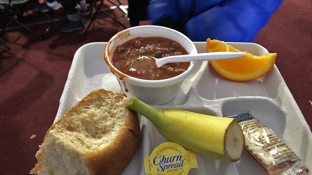 This was by far the longest I had ever skied (training or otherwise) and very likely in the coldest temperature as well. I fell only once (maybe 1.5 times, if I count that one time near the halfway point when I nearly knelt as one ski got stuck in snow) and that was after I crossed the finish line: I didn’t realize how tired my feet were and in turn, couldn’t really pick the ski up to snow plow to a stop before a lovely volunteer could hang a medal around my neck. I figured it was a wise thing to fall instead of crashing into her. After a brief chat with Sammy, I headed straight to the group of volunteers serving water, blueberry soup, cookies and more. I had several servings of the warm blueberry soup – if I looked blue, trust me, it wasn’t from the cold!