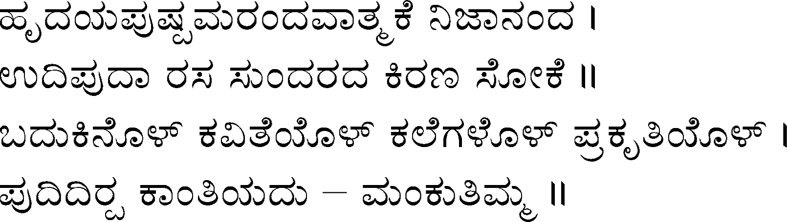 Being a fan of DVG's work, specifically of Kagga, I was then looking for an online resource to periodically review various verses. Not finding any and realizing that the support for rendering Kannada font in web browsers was minimal to non-existent, I combined the two projects - rendering LaTeX expressions as graphics and typesetting Kannada in LaTeX - to typeset, compile and produce all 945 verses as web-friendly PNG images over the next few years. The project was completed and the final verse, #945, was published on 29th August 2010. Sometime in early December 2020, the project files were restored from an old SVN repository into GitHub, higher resolution images were generate using tex2im (Python utility) and incorporated into my journal with originally published dates.
