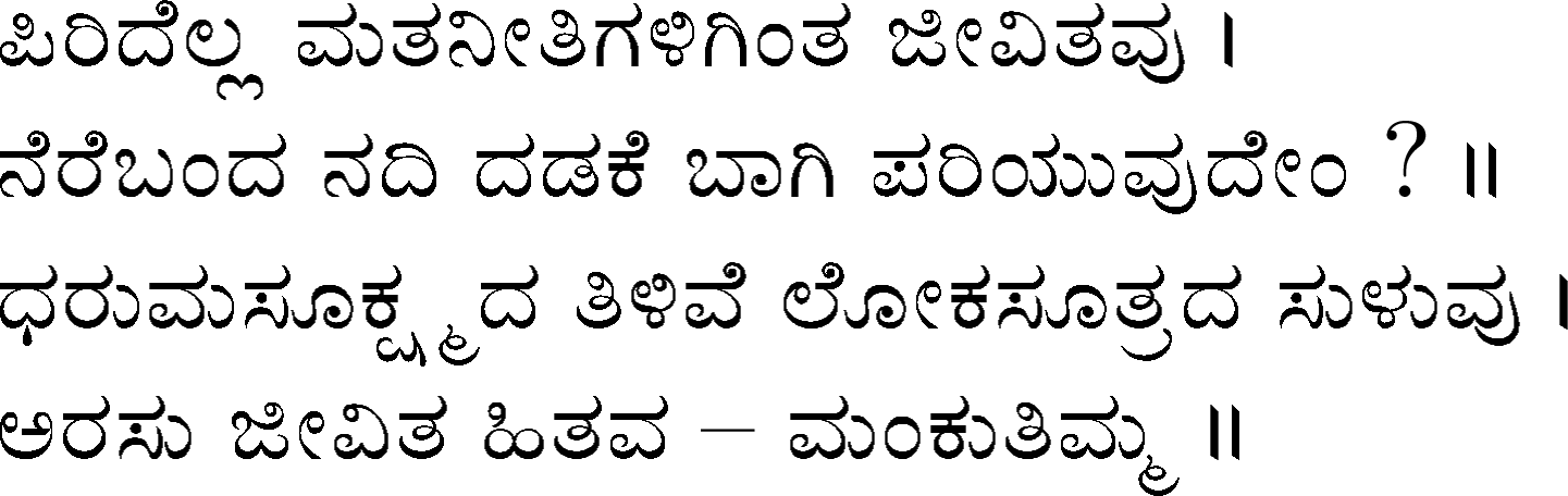 Devanahalli Venkataramanaiah Gundappa - better known as D V Gundappa or better yet just by his initials, DVG - was a writer and philosopher and a stalwart of Kannada (one of the south Indian languages) literature. While he authored numerous works - Antahpura Geete, Umarana Osage, Jnaapaka Chitra Shaale, Jeevana Dharma Yoga, MaruLa Muniyana Kagga, Samskruti, Vasanta Kusumaanjali and more, I believe that Mankutimmana Kagga (loose translation: Dim Tim's Rigmarole) stands out as being most familiar to the masses. Published in 1943, Mankutimmana Kagga (or just Kagga) is a collection of 945 standalone 4-line poems (i.e., muktaka) that conform to a specific grammar rule (i.e., aadipraasa - the second letter in every sentence of a given poem is the same or its variant). Their elegance and beauty, to me anyway, is that the scope of their meaning and one's understanding in turn seem to grow with one's experiences in life.